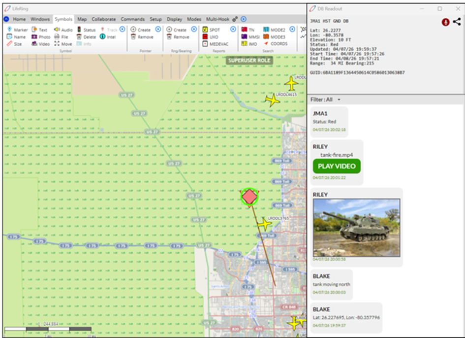 A less time critical use of the Smartwatch is when a watch wearer can add tactical information to the COP by simply speaking to the watch and saying “hostile tank, 200 yards at 080 degrees”. This voice-initiated action then adds a MIL STD 2525 hostile map symbol at the spoken range and bearing from the wearer. A feature that is coming soon is for the symbol to be amplified with additional information added by the watch wearer and others in the COP network. This information is displayed when the symbol is hooked. The information created in this process can be immediately transmitted or retained to avoid RF targeting until the wearer is at a safe location and when connectivity can be reestablished and data can be selected to be downloaded to the Server for display on everyone’s COP.